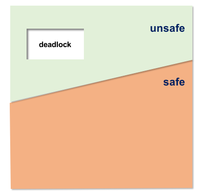 unsafe state라고 해서 무조건 데드락에 걸리는 것이 아니라 모든 프로세스들이 자기들이 요구할 수 있는 최대치의 리소스를 요청할 때 발생하는 것입니다.