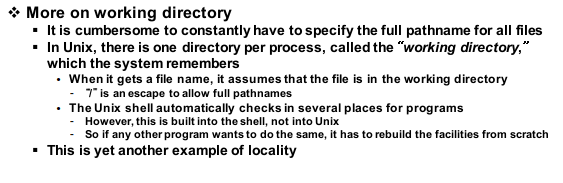 working directory에 대해 알아보겠습니다. 워킹 디렉터리는 파일 시스템에서 작업을 할 때 그 작업이 이루어지는 디렉토리를 말합니다. 워킹 디렉토리는 absolute full path name이 아닌 relative path name을 사용할 수 있게 해줍니다. (cmd나 ubuntu 같은 경우 현재 작업 중인 디렉토리를 기준으로 시작할 수 있음)