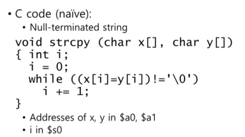 두 어레이를 받아서 y arrary 값을 x arrary로 저장을 합니다. 이 함수는 leaf procedure로 볼 수 있습니다.