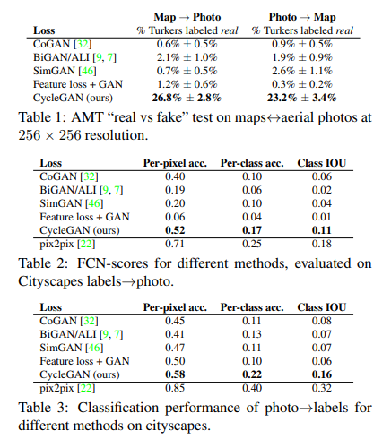 - 나머지 자동화된 테스트 지표에서도 Cycle GAN 지표가 좋은 성능을 보여줍니다.