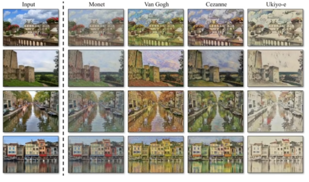 - 모네가 그린 듯한 그림을 실제 사진으로 바꾸거나 실제 자연을 다시 모네의 화풍으로 변경