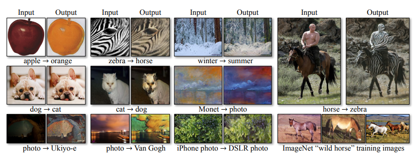 위 사진과 같이 Cycle GAN은 다음과 같은 작업이 가능합니다.