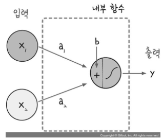 - y = ax + b (a는 기울기, b는 y 절편) → y = wx + b (w는 가중치, b는 바이어스)