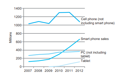 2007~2012년도 사이 제품 판매량을 본다면 기존 pc보다 태블릿이나 스마트폰 같은 임베디드 컴퓨터가 더 잘 팔립니다.